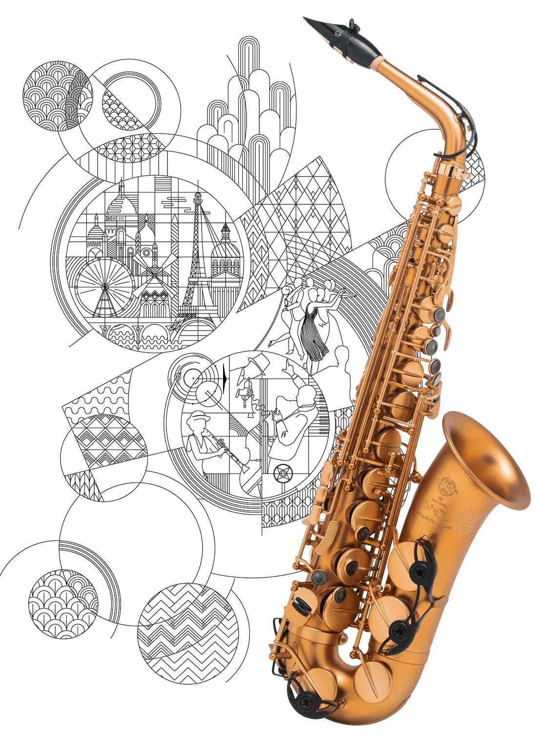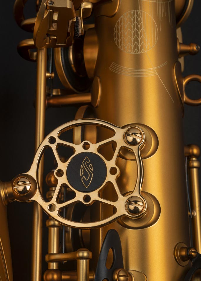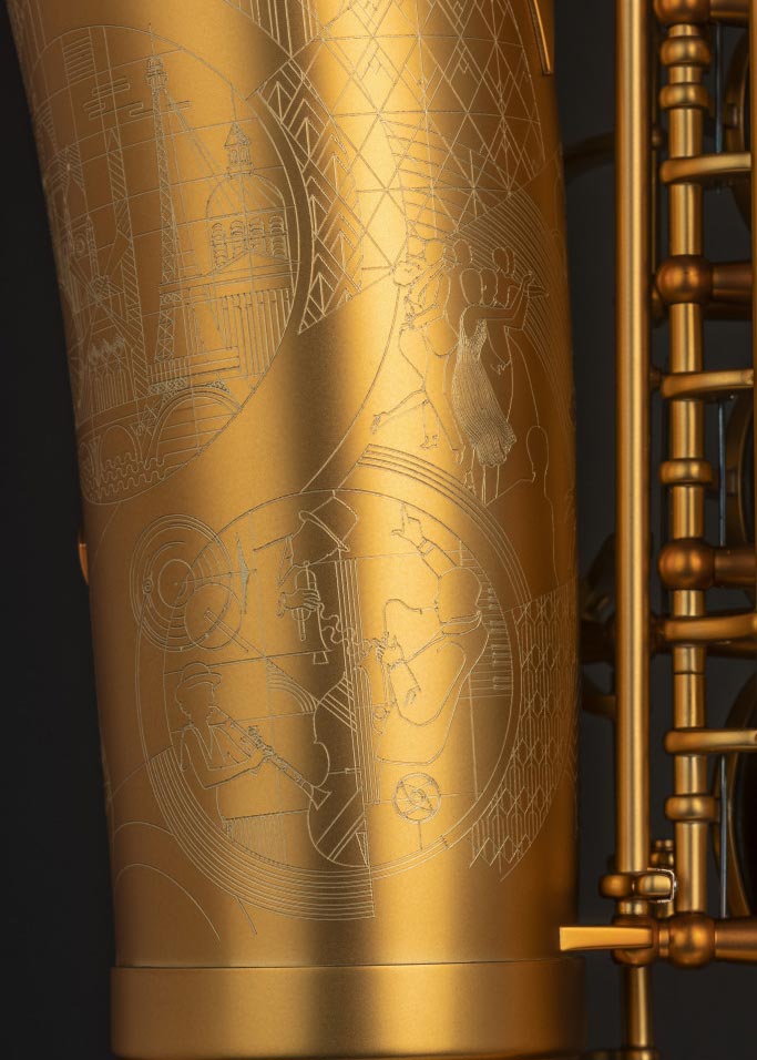 Outre son perfectionnement technique et la qualité de ses matériaux, l’instrument est ainsi paré d’un décor évoquant la joie et le dynamisme du Paris des années 20 à travers certains de ses monuments iconiques. Gravé à la main, ce décor Art Déco lui confère une élégance et une beauté uniques. Cette réédition est aussi pensée comme un hommage aux musiciens du monde entier et à toutes les esthétiques musicales. En effet, la relation entre la Maison Selmer et les musiciens a toujours été au cœur de la facture instrumentale puisque les instruments résultent d’une étroite collaboration entre Selmer et les plus grands saxophonistes du monde entier.