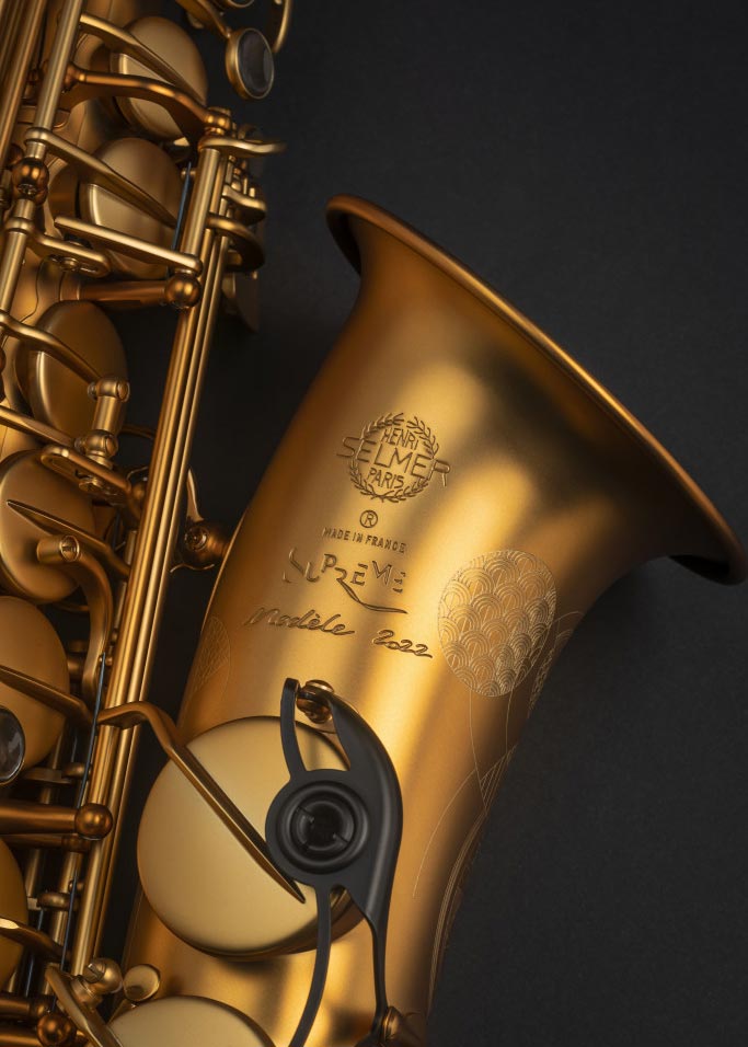 To commemorate the 100th anniversary of the legendary first Selmer saxophone, which revolutionized the history of the instrument, the House wanted to pay tribute to this instrument and to the generations of workmen whose exceptional craftsmanship made it possible to continue to produce this instrument in the workshops of Mantes-la-Ville. To this end, a top-of-the-range reissue of the Modele 22 was produced in just 641 examples – this number referencing the number of parts it is made of – under the name of “Supreme Modele 2022”. With this new instrument, it is the Paris of the Roaring Twenties and its dynamic music scene that Maison Selmer wanted to revive.