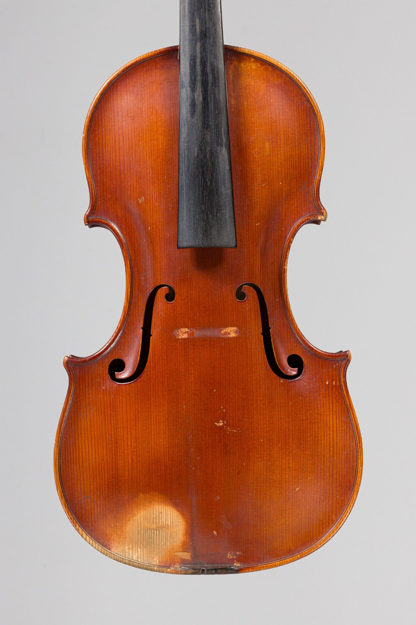 A rare photograph, also part of the workshop contents, depicts him proudly presenting this violin dedicated to Berthe. The level of detail and originality of the carved decoration on this instrument demonstrate the wide range of expertise of Gustave Villaume. He was willing to apply all his ingenuity and technical expertise for special pieces, even if they were not intended for sale.