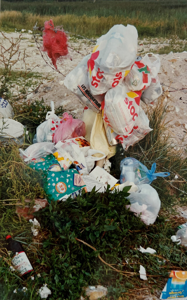 They also feature tagged facades, numbers on shop windows, pedestrian crossings, red and white marking stripes, traffic arrows, architectural elements covered in garish colours, – or just asphalt… These photos, whether by their composition, patterns, or bold colours, could be mistaken for the assemblages of his paintings.